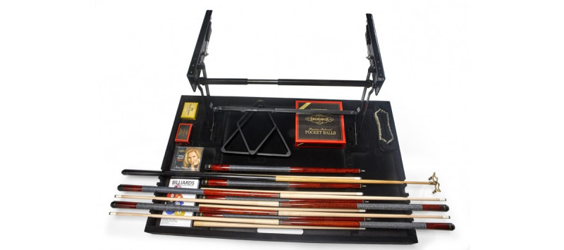 Predal za shranjevanje je pritrjen na spodnjo stran vaše biljardne mize Brunswick in ga je mogoče uporabiti na številnih mizah iz naše kolekcije biljardnih miz Brunswick v velikosti 8' ali 9'. Vanj lahko shranite vse predmete iz našega paketa Centennial Play Package, vključno s palicami, shranjenimi v polni dolžini.